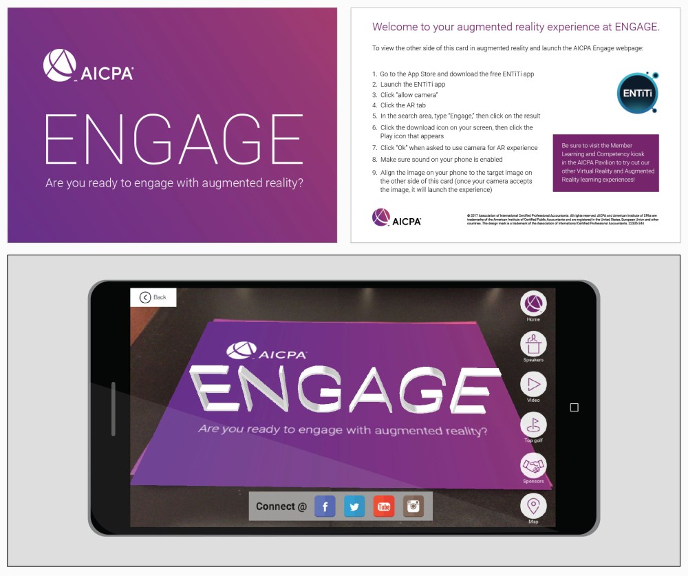 AR postcard that provided Engage Conference participants with info on events. I assisted with postcard creation and branding of the app.